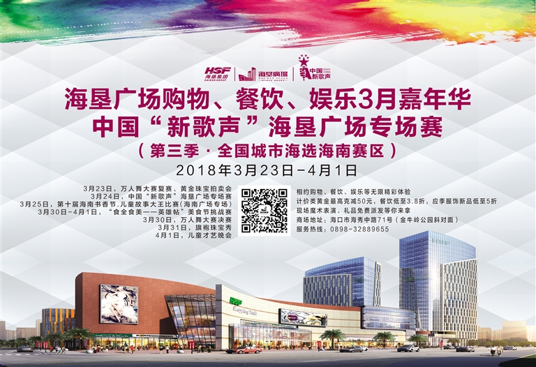 海垦广场购物、餐饮、娱乐3月嘉年华 中国“新歌声”海垦广场专场赛