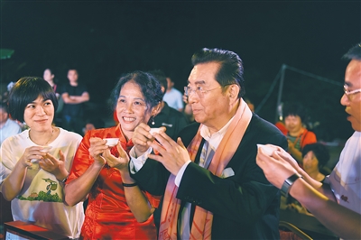 当晚,在篝火晚会现场,李双江为现场的黎族苗族同胞献上了那首传唱经久不衰的《我爱五指山 我爱万泉河》。当晚,李双江还与黎族苗族同胞一起歌唱。