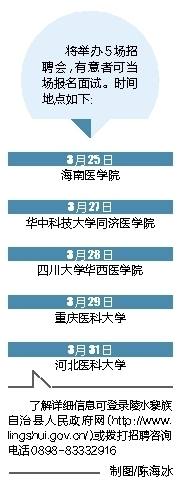 此次招聘中硕士毕业生、取得执业资格者或专业技术资格证书者(考试已达要求未取得证书者视同取得)及陵水县、海南省户籍(生源)者优先。