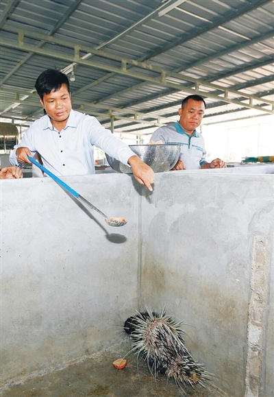 “豪猪喜吃玉米、白菜、萝卜、南瓜、花生等,豪猪消化能力特强。”3月21日,在陵水黎族自治县本号镇中央村姑娘园村民小组的豪猪养殖基地,“师傅”杨武强正向村民“学员”传授豪猪养殖技术。