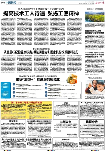 海南日报 中国新闻综合 010 2018-03-231 2018年03月23日 星期五