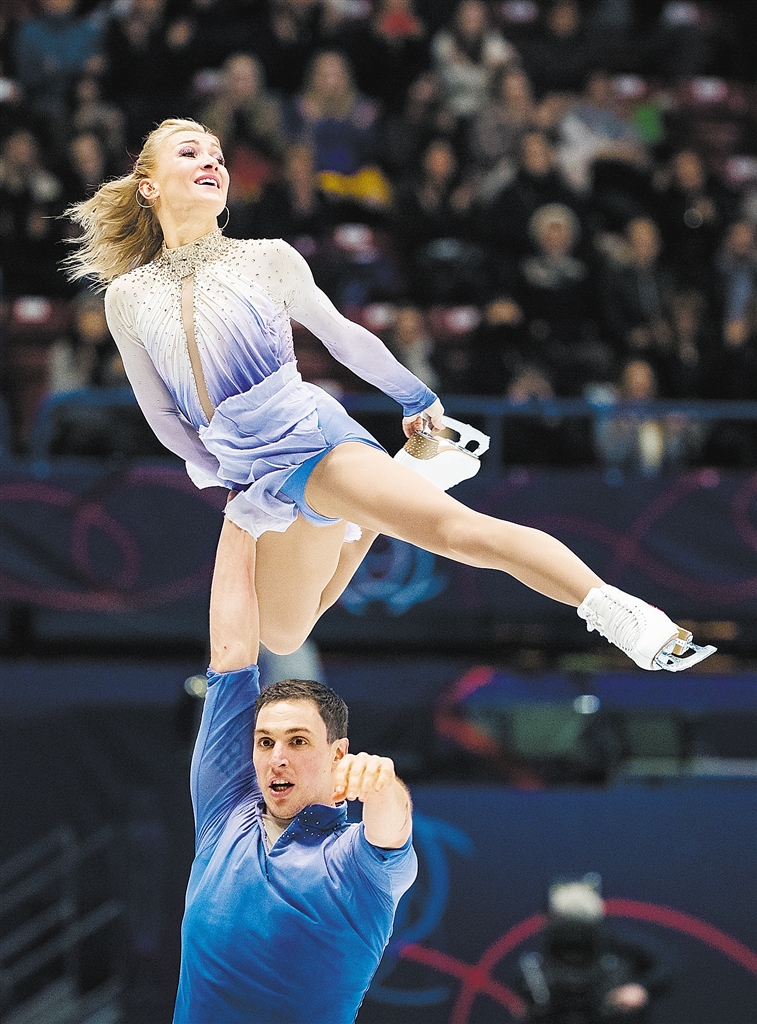 伴着法国纪录片《鸟瞰地球》的原声音乐,这对2014年10月开始合作的德国搭档滑出了一套比冬奥会表现更完美的自由滑节目,9名裁判给出22个10分,多集中在艺术表现、音乐诠释和动作组成上,最终自由滑得分162.86刷新纪录,总分245.84同样是新纪录。