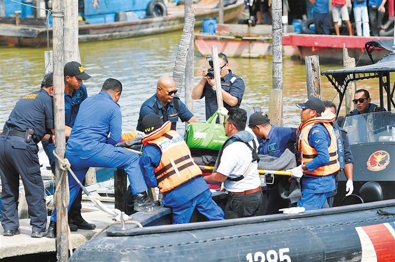 中国驻马来西亚大使馆23日说,搜救人员当天在马南部蔴坡附近海域倾覆的挖沙船中救出两名中国籍船员。新华社记者看到,获救的两名中国船员由快艇送到码头,随后被送往附近医院救治。使馆说,搜救人员还在继续全力搜救其余10名失踪的中国船员。 新华社发