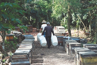连续10年来海口采蜜,宫志国已跟当地人很熟络,今年还有果农主动腾出闲置房屋给他们住。但他只让儿子、儿媳和两个徒弟去房里住,自己和妻子仍然住在离蜂箱最近的“帐篷”里。“蜜蜂是我们的命根子。晚上要是蜜蜂中毒,它们会嗡嗡叫,在篷里我就能听见。”