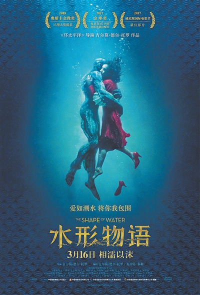 《水形物语》斩获了今年奥斯卡最佳影片、最佳导演、最佳艺术指导、最佳原创配乐四项大奖。这部影片以华丽和复古的方式讲述了一个老套的故事。不喜欢它的人觉得平淡无奇,喜欢它的人会被感动得一塌糊涂。