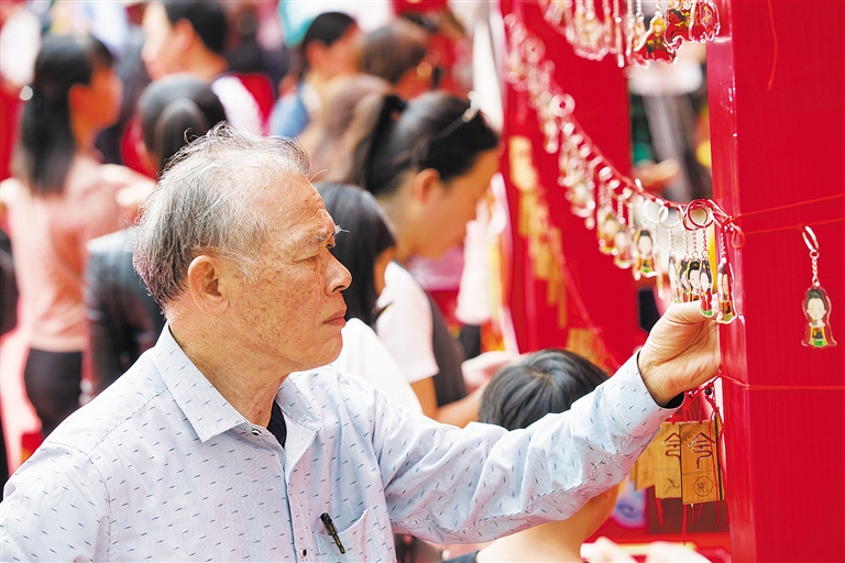 “冼夫人卡通形象十分可爱,文创产品也很实用。”来自重庆的陈先生这是第一次参加冼夫人文化节,一口气买下了六个钥匙扣,表示要送给外地的亲朋好友。