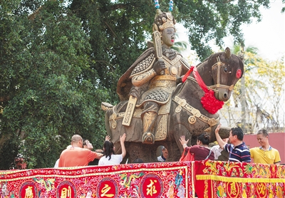 洗龙水、摸马脚、五福驿站取五福……3月25日下午,在海口市龙华区新坡镇冼夫人纪念馆里,人声鼎沸、热闹非凡,众多市民自驾从海口市区赶来,参与民间祭祀、祈福活动。