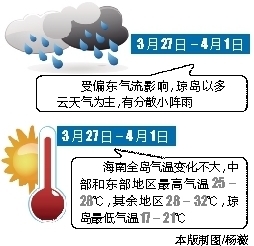 此外,气象部门预计,4月海南岛平均气温略高,降水偏少。主要的冷空气和降水时段:4月上旬中后期、4月中旬后期和4月下旬中后期。