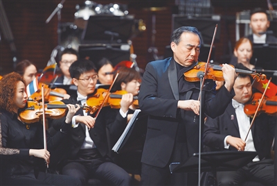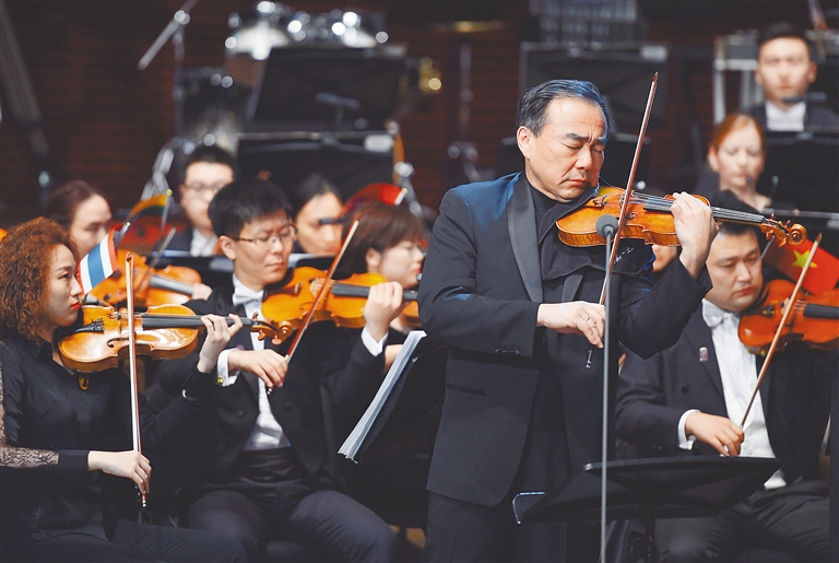 2018深圳“一带一路”国际音乐季日前开幕,来自40多个国家和地区的音乐家将在一个多月时间里带来18场演出。图为美籍华裔小提琴演奏家林昭亮在开幕音乐会上演奏电影《辛德勒的名单》主题曲。 新华社记者 毛思倩 摄
