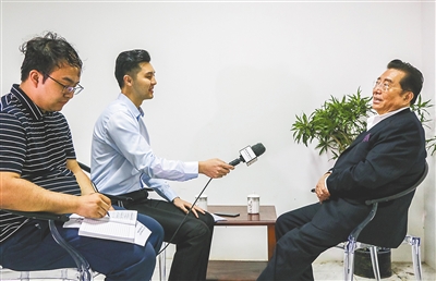 3月19日,李双江(右)在五指山接受本报记者专访。 本报记者 武威 摄
