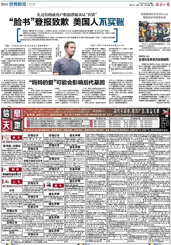 “脸书”登报致歉 美国人不买账