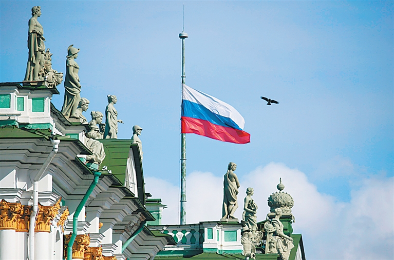 3月28日,在俄罗斯圣彼得堡,艾尔米塔什博物馆降半旗志哀。