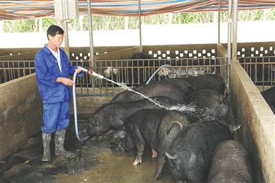 “海南壹号畜牧有限发展公司在镇里有个存栏量为3.5万头黑猪的养猪场,具有雄厚的实力和成熟的养殖技术。考虑到这些,镇里才和公司签订协议带动贫困户脱贫。”方天标说,为了保证贫困户的分红稳定,中兴镇和公司签订协议,合作社每年每头猪获得收益金110元,即3个猪场每年可获得收益金77万余元,收益金的8%作为合作社管理和维修金,92%用于贫困户的分红。