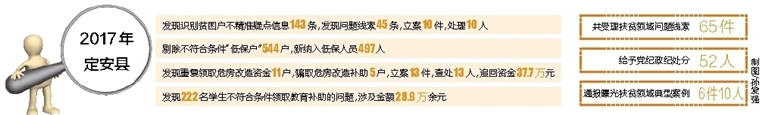 此类基层问题的发现和解决,得益于定安县纪委持续发力,将纪律审查的关口向基层前移。据统计,自2016年11月起,第十三届定安县委已派出15个巡察组,已完成四轮巡察工作,共发现扶贫领域问题41个,完成整改10个,立案19件21人,诫勉谈话1人,已给予党政纪处分18人。