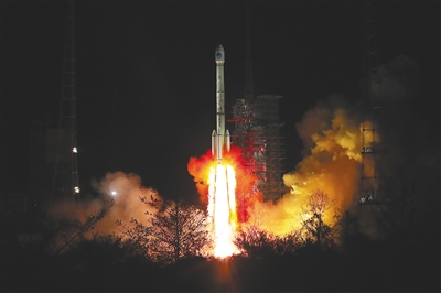 3月30日,我国在西昌卫星发射中心用长征三号乙运载火箭(及远征一号上面级),以“一箭双星”方式成功发射第三十、三十一颗北斗导航卫星。 新华社发(梁珂岩摄)