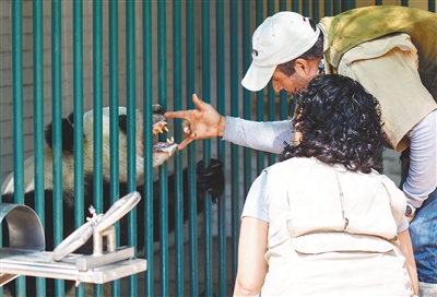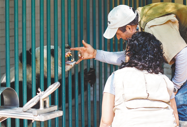 埃利亚斯·加西亚·拉米雷斯和米莉娅姆·诺盖拉是墨西哥城查普特佩克动物园的两名大熊猫饲养员,他们已在动物园照料大熊猫19年。 新华社发