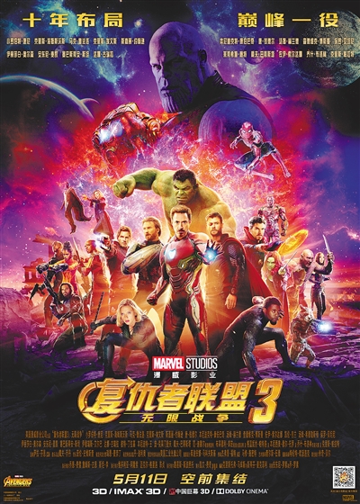 据介绍,《复仇者联盟3》是漫威出品的超级英雄系列电影之一,也是漫威电影宇宙建立10年来,让几大超级英雄在同一部影片中空前大团结的影片。在该片中,这些超级英雄们抛开个人恩怨云集在一起,目的就是联合对抗任何个人超级英雄都对付不了的最强反派——弹指一挥间就能摧毁一切的灭霸。
