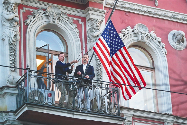 俄罗斯外交部29日宣布关闭美国驻圣彼得堡总领馆,收回美国驻圣彼得堡总领馆的开馆和办公许可,要求其工作人员在3月31日前全部搬出俄方为其提供的办公场所。 新华社/美联