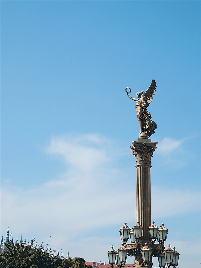 爬上布拉格城堡的城墙,布拉格会更完整地呈现,这个时候适合放一曲《伏尔塔瓦河交响曲》,在风中看伏尔塔瓦河怎么流过这城市,去细数那一座座桥,一群白鸽适时地飞过,总之一切都美得不像话。浪漫?文艺?神秘?梦幻?这些词语好像都不足以形容布拉格,那一刻,就算是匆匆过客,也不由自主地爱上这座城了!