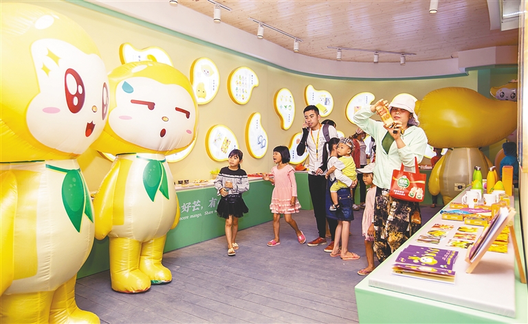值得一提的是,在特色展示区还打造了一条特色芒果大道,作为果园内的特色景观之一,营造出浓郁的芒果创意、文艺的氛围。大道两旁进行关于芒果的创意装饰设计,并销售相关文创产品和多种芒果创意美食。