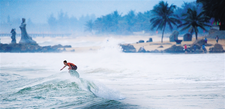 2018年2月20日,万宁日月湾,许多游客学习冲浪,享受假日时光。 本报记者 袁琛 摄