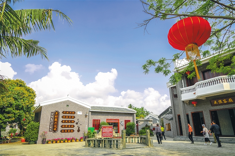 南强村坐落于万泉河畔,全村有52户人家、253人,去年被纳入博鳌田园小镇美丽乡村建设,村庄采取“公司+合作社+农户”的经营模式,吸引到碧桂园等企业进驻,对村庄进行了整体规划设计和升级改造,使之焕发出全新的活力。