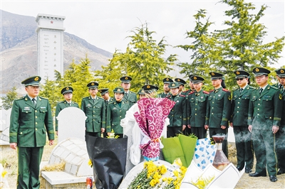 4月5日,西藏公安边防总队官兵在拉萨烈士陵园内祭奠英烈。当日是清明节,全国各地开展多种形式的祭扫活动,缅怀逝者。新华社发