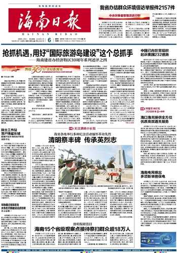 海南日报 头版 001 2018-04-061 2018年04月06日 星期五