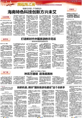 第002版:潮起海之南 省外媒体聚焦海南建省办经济特区30年辉煌成就