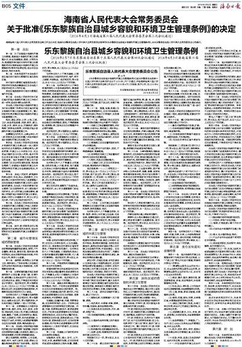 乐东黎族自治县城乡容貌和环境卫生管理条例