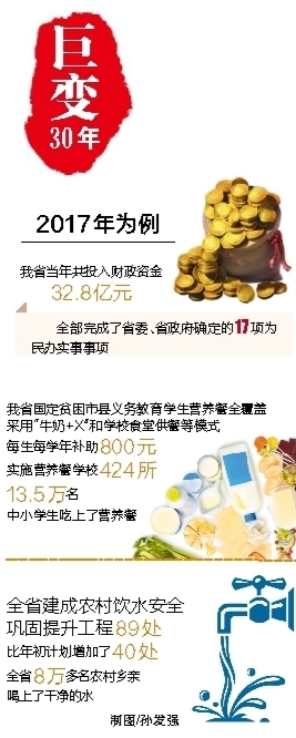 以2017年为例,我省当年共投入财政资金32.8亿元,全部完成了省委、省政府确定的17项为民办实事事项。