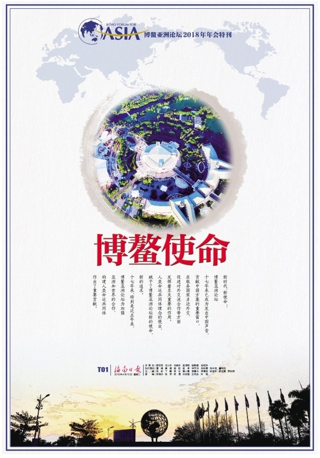特刊共32个版,分为“新时代 新使命”“与博鳌一起成长”两大篇章。“新时代 新使命”主要阐述博鳌亚洲论坛成立以来特别是近五年来为加强亚洲和世界的合作、推动构建人类命运共同体所作出的贡献;“与博鳌一起成长”围绕海南如何与论坛共成长、共兴盛,着墨我省各部门、市县在“一带一路”建设、旅游、外贸、文化交流、民生等方面的成就。
