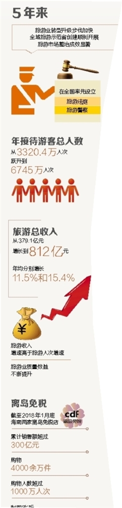 5年来,海南大力推进产业结构优化升级,加快发展高水平旅游业,在加快建设国际旅游岛、推动经济持续健康发展的征程中不断攻坚克难、勇攀高峰。