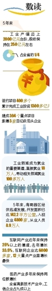 5年来,海南园区经济迅速发展,开发面积已达142.2平方公里,入驻企业4800家,从业人员8.9万人,产值占到全省工业的80%左右,成为新型工业和信息产业的聚集地,并获得了多项荣誉,如洋浦国家级经济技术开发区已成为重要的油气石化生产基地和全国最大的商业油气储备及贸易中心;老城经济开发区荣获“中国最具投资价值的十强开发区”“中国50家投资环境诚信安全区”称号;海南生态软件园荣获“国家级科技企业孵化器”“新型工业化示范园区”等称号。