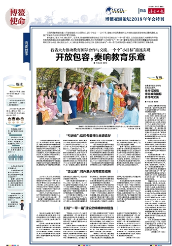 近年来,全省教育系统紧紧围绕服务党和国家工作大局,结合海南实际,发挥海南优势,突出海南特色,充分发挥教育在“一带一路”建设中的基础性、先导性、引领性作用,聚力开创海南教育对外开放新局面,助推中国教育逐步走向世界教育中心。