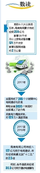 在这背后,是海南电网瞄准一流水平奋起直追的干劲。据统计,近五年来,南方电网海南公司累计完成投资209亿元,新增35千伏及以上变电设备容量571万千伏安,新增主配网线路约2万公里,是海南电网发展史上完成投资最多、投运设备最多、新增线路最多的五年。