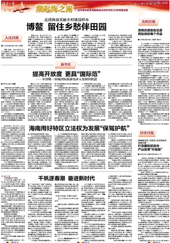 | 海南日报 潮起海之南 省外媒体聚焦海南建省办经济特区30年辉煌成就 012 2018-04-101 2018年04月10日 星期二 |