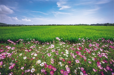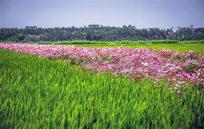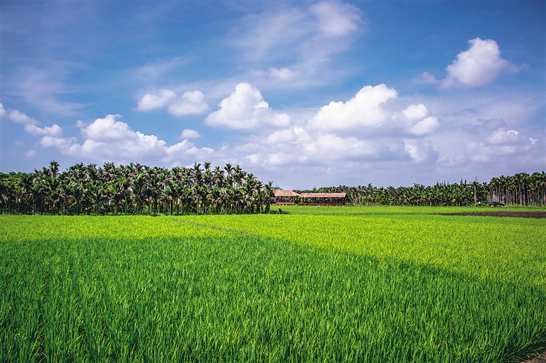四月的博鳌乡村振兴示范区,春风荡漾。春风拂过农业公园,千亩青翠的水稻田里绿浪涟漪;春风拂过红树林湿地,各类水生植物生机盎然……