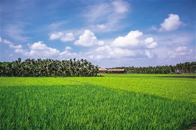 博鳌国家农业公园板块作为博鳌乡村振兴示范区的重要组成部分,规划总面积约1万亩,核心区分为两大区域,北侧培兰洋主要为优质水稻种植区,面积约为2880亩;南侧沙美洋主要是瓜果种植区,面积约为1590亩。通过加快土地流转,发展适度规模种植,目前形成“春有稻香迎客,秋有瓜果飘香”的新田园景观;同时,园区还完善了基础设施配套,促进农田的持续利用,实现生态、生产、生活的和谐统一。生动诠释了“绿水青山就是金山银山”。
