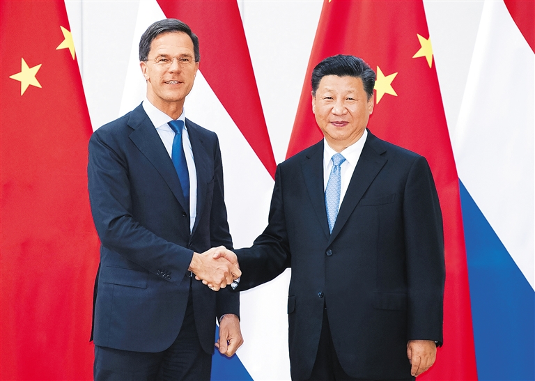 习近平指出,中荷关系潜力巨大,大有可为。下阶段,双方要践行开放共赢合作理念,积极推动传统领域合作提质升级,大力拓展新兴领域合作,扩大和丰富人文交流,实现更高水平的互利共赢。中荷是“一带一路”建设的天然合作伙伴。我们赞赏荷方支持“一带一路”倡议,欢迎荷方积极参与。要做好顶层设计,为双方深入开展合作创造条件。