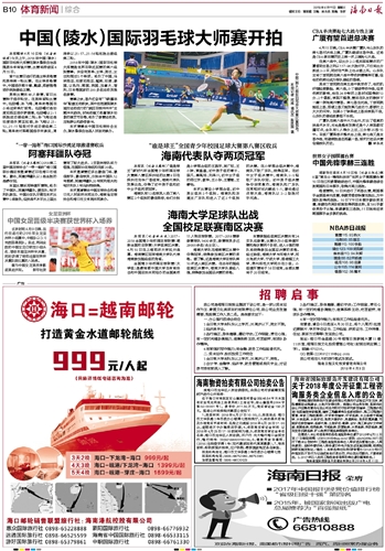 海南日报 体育新闻综合 022 2018-04-111 2018年04月11日 星期三