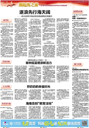 海南日报 潮起海之南 省外媒体聚焦海南建省办经济特区30年辉煌成就 007 2018-04-121 2018年04月12日 星期四