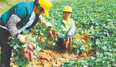 “每年的丰收季都是我们沙土村最热闹的时候。还没到周末,我的电话就要被打爆了,都是预约周末来挖地瓜的。” 桥头地瓜品牌越打越响,催生了采摘旅游热。3年前,沙土村村民杨英春瞅准时机,把自家的“地瓜楼”改成了接待室,发展地瓜采摘游。