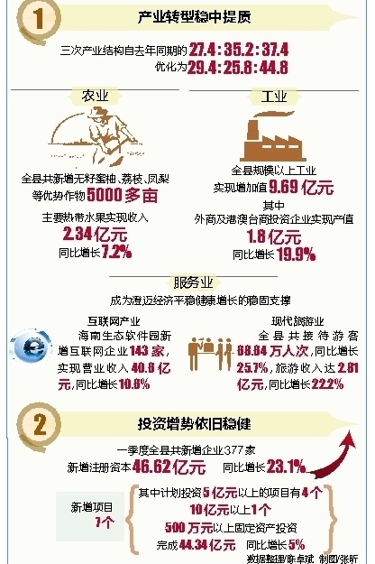 本报金江4月12日电 (记者陈卓斌 特约记者陈超)记者从澄迈县近日召开的一季度经济形势分析会上获悉,预计(下同)今年一季度,澄迈全社会固定资产投资完成47.39亿元,同比增长4.8%;社会消费品零售总额实现13.5亿元,同比增长11.5%;城镇、农村居民人均可支配收入分别为7937元和3798元,分别同比增长7.2%和7.3%。