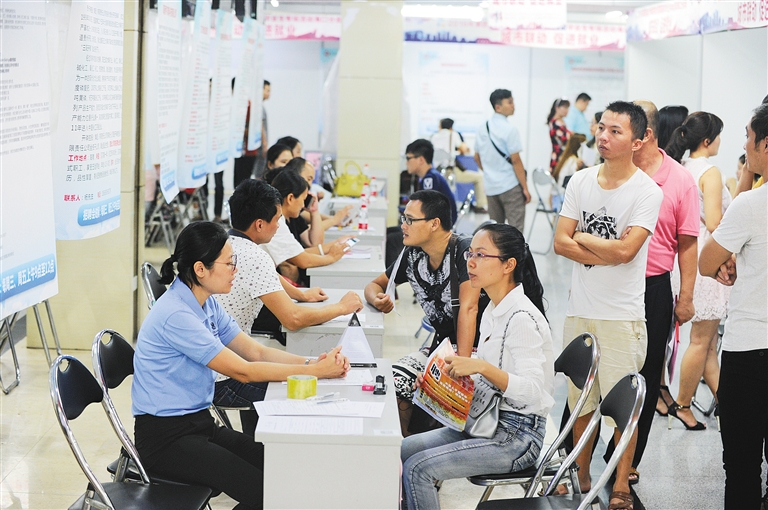 2016年,海口市人力资源市场举办的招聘会吸引众多求职者前来应聘。本报记者 袁琛 摄
