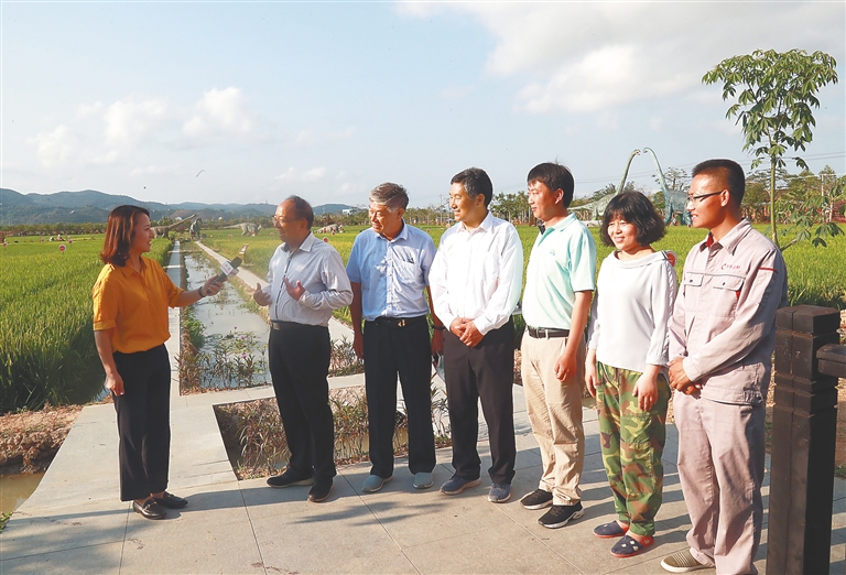 4月12日,在国家南繁科研育种基地,与总书记面对面交流的农技专家们回忆暖心细节。本报记者 李英挺 摄