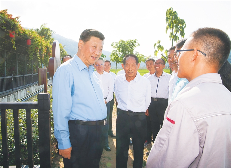 | 4月11日至13日,中共中央总书记、国家主席、中央军委主席习近平在海南考察。这是4月12日下午,习近平在国家南繁科研育种基地同袁隆平院士等农业科技人员亲切交谈,了解水稻育制种产业发展和推广情况。 新华社记者 李学仁 摄 |