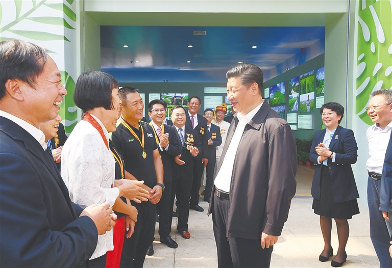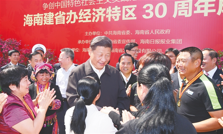 | 4月11日至13日,中共中央总书记、国家主席、中央军委主席习近平在海南考察。这是4月13日上午,习近平在海南省博物馆同海南省部分劳动模范和行业代表亲切交谈。新华社记者 李学仁 摄 |