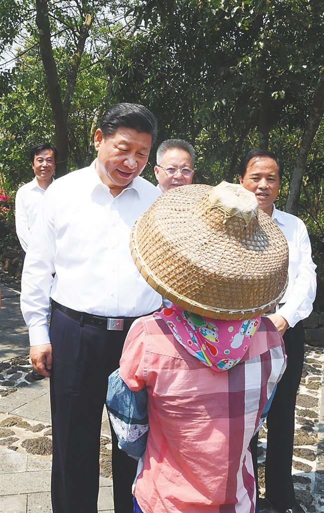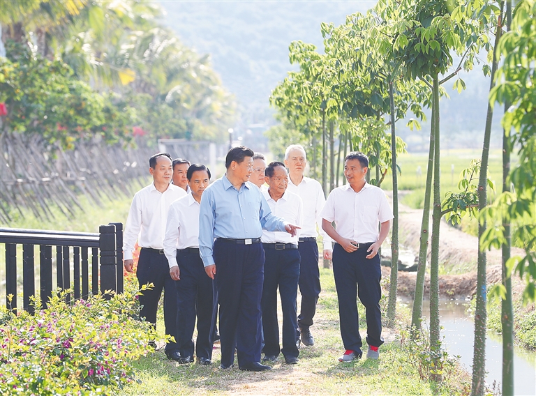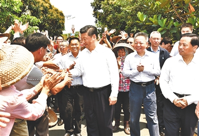 | 4月11日至13日,中共中央总书记、国家主席、中央军委主席习近平在海南考察。这是4月13日上午,习近平在海口市秀英区石山镇施茶村考察时,同村民亲切交谈。新华社记者 李学仁 摄 |