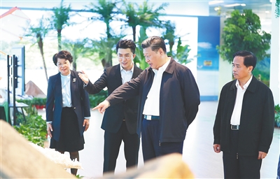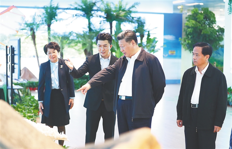 | 4月11日至13日,中共中央总书记、国家主席、中央军委主席习近平在海南考察。这是4月13日上午,习近平在海南省博物馆参观海南建省办经济特区30周年成就展。新华社记者 谢环驰 摄 |